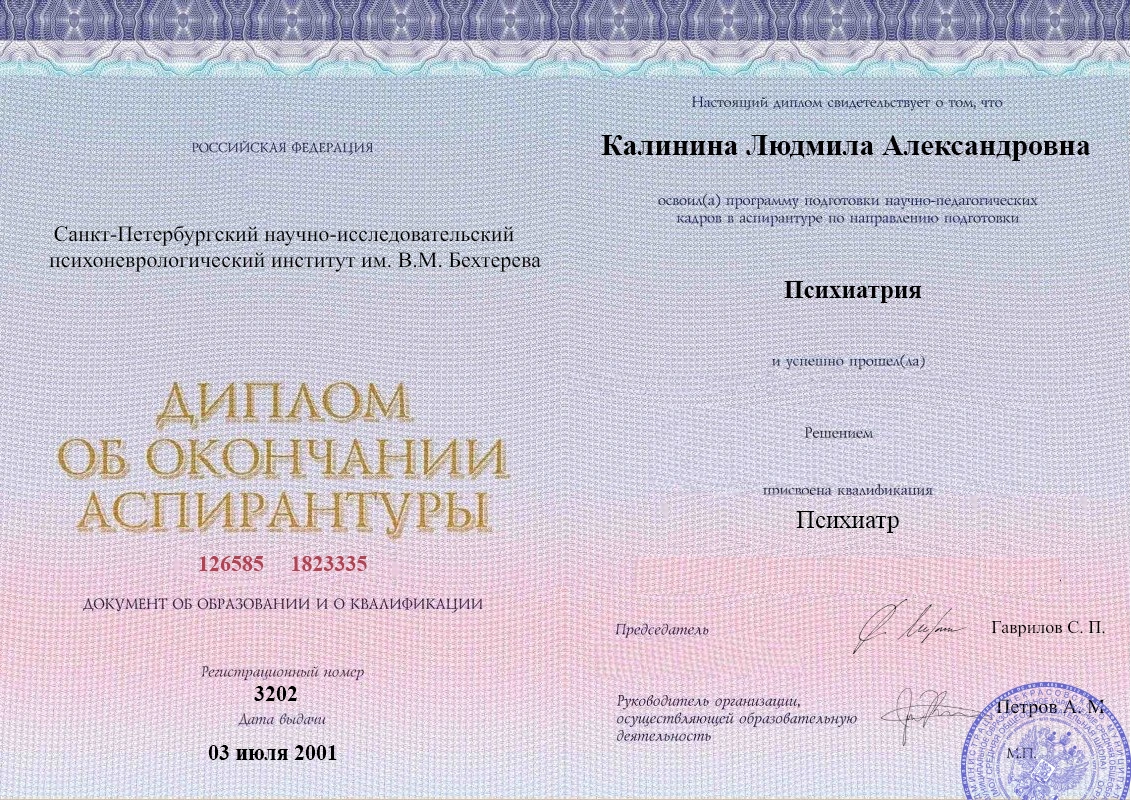 • Российский национальный исследовательский медицинский университет имени Н.И. Пирогова (Психиатрия-наркология).